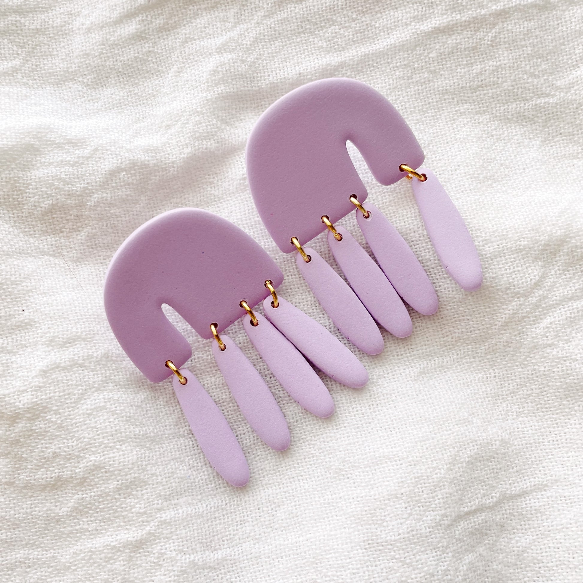 All Meadow & Mae earrings are made from hand-mixed polymer clay colors and utilize gold-plated and silver-plated posts and hooks. Additional hardware, such as jump rings, are brass.
