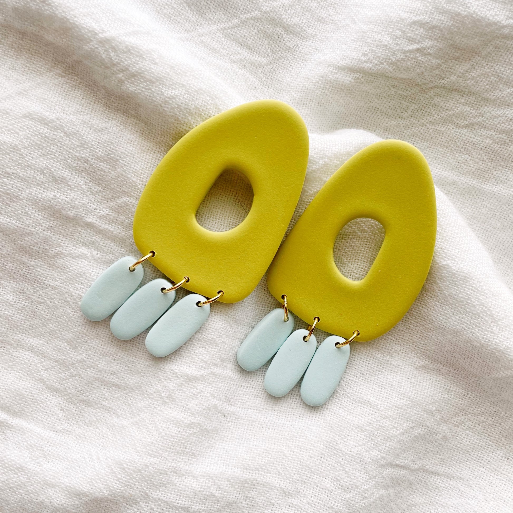 All Meadow & Mae earrings are made from hand-mixed polymer clay colors and utilize gold-plated and silver-plated posts and hooks. Additional hardware, such as jump rings, are brass.