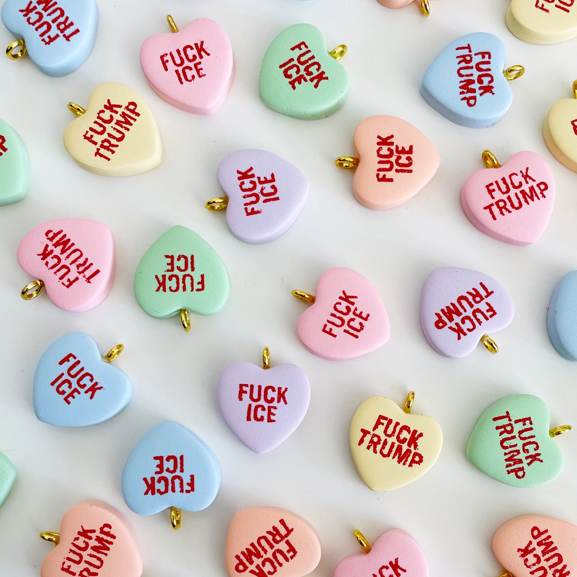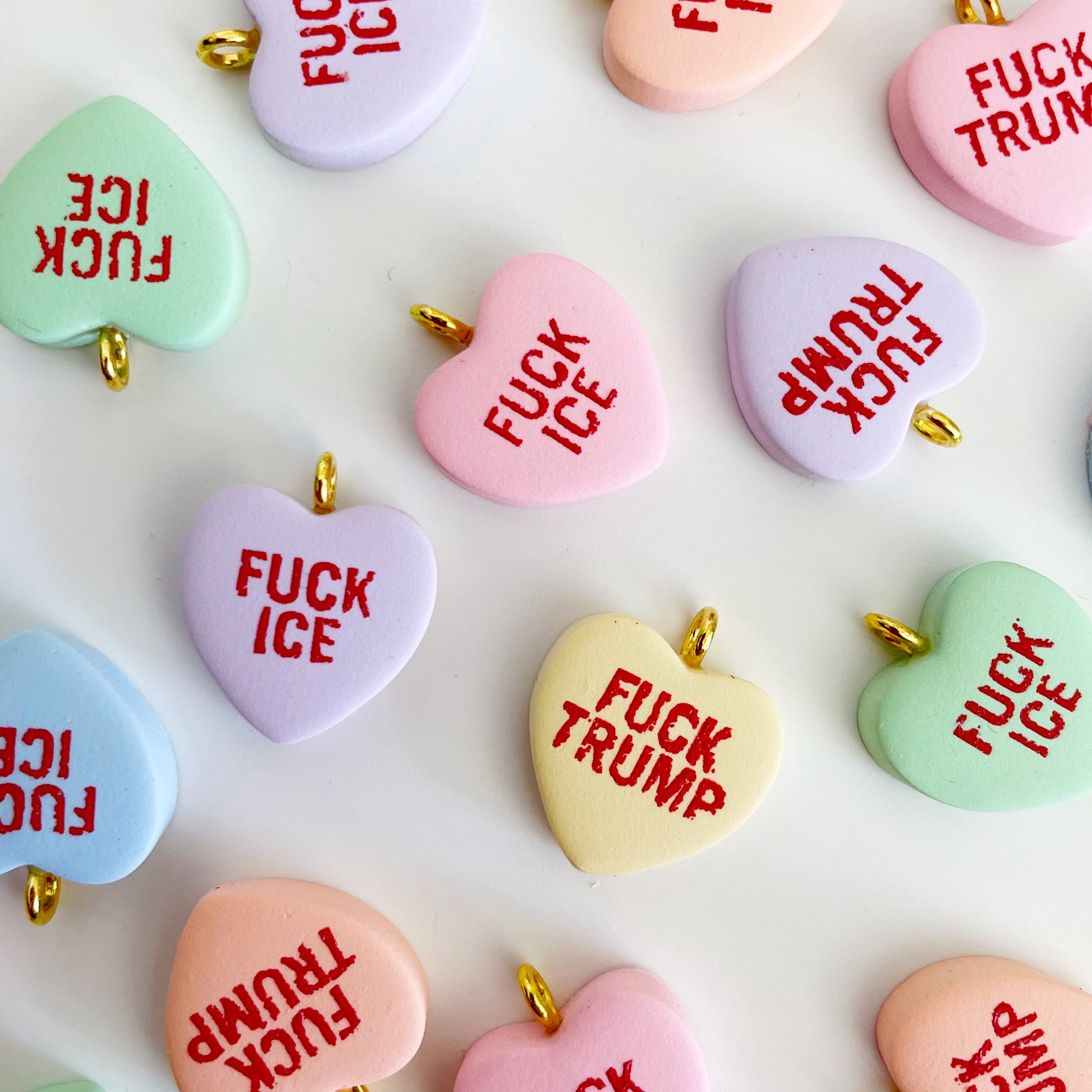 Conversation heart charms that express exactly how you're feeling about our government right now. Available in six different colors with two different phrases - perfect for mixing and matching.
