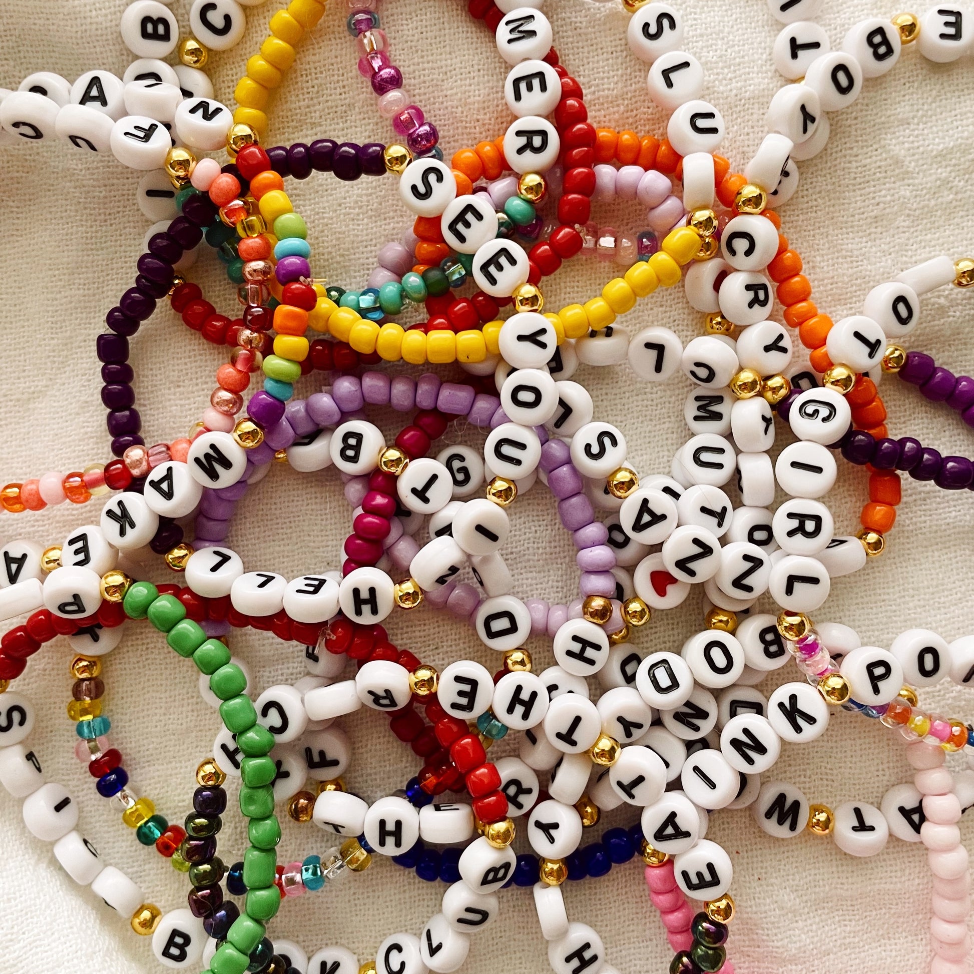 Now offering made to order beaded bracelets! Available in twenty different color options. Just add the word or short phrase of your choice and we'll make it reality!