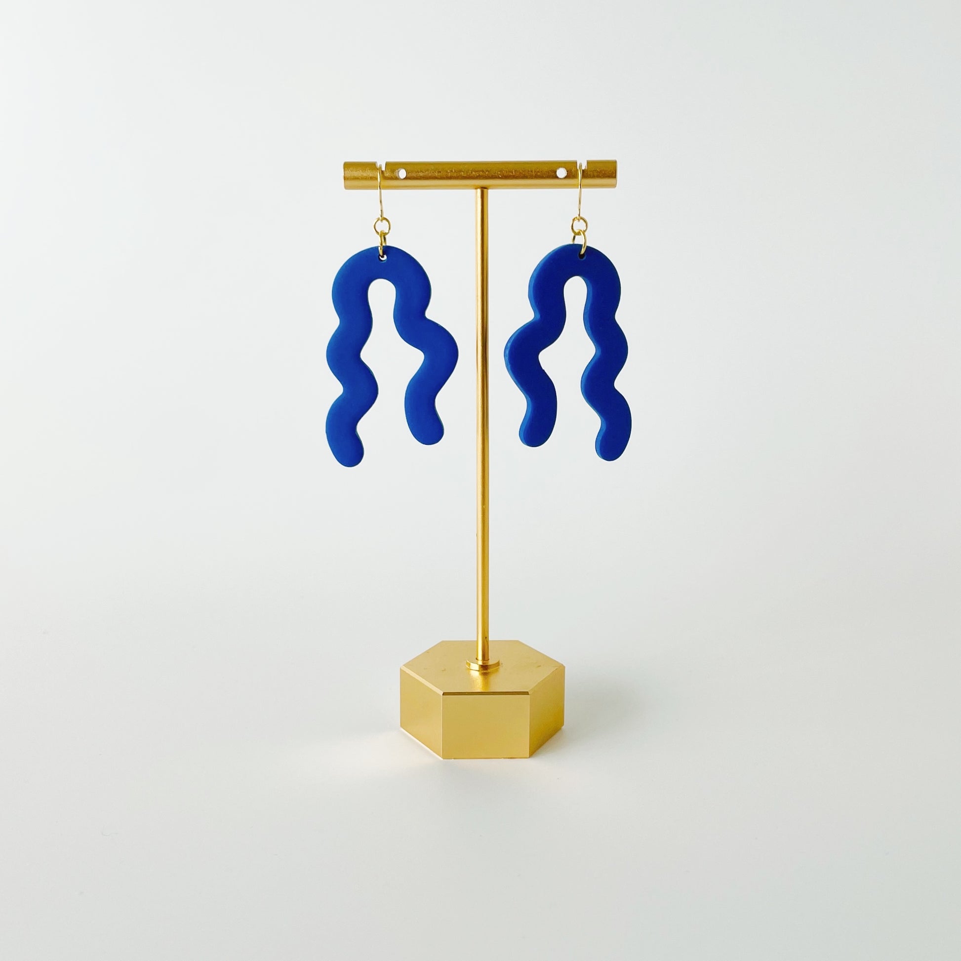 Make any outfit more whimsical with these fun squiggly arches hanging from gold-plated hooks!