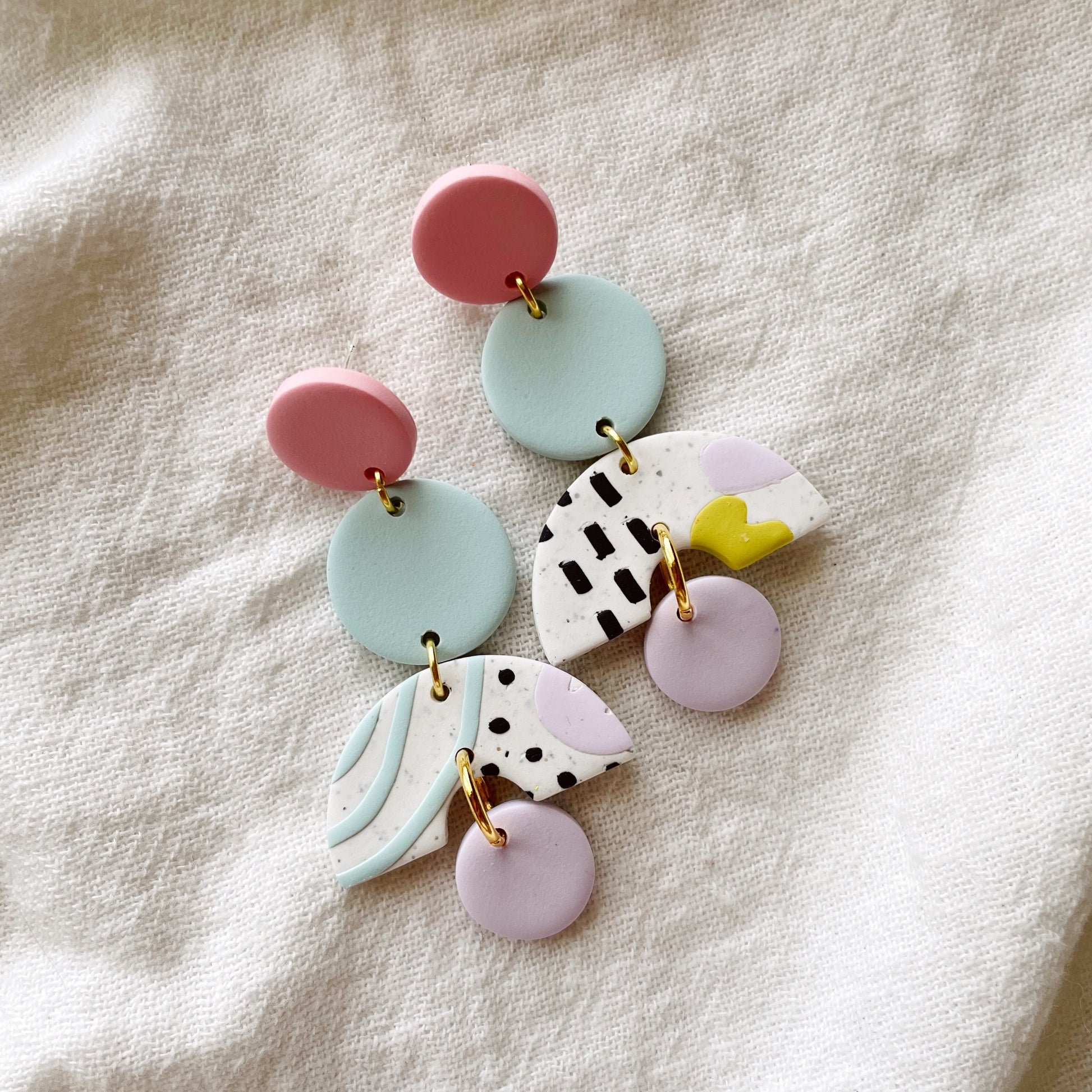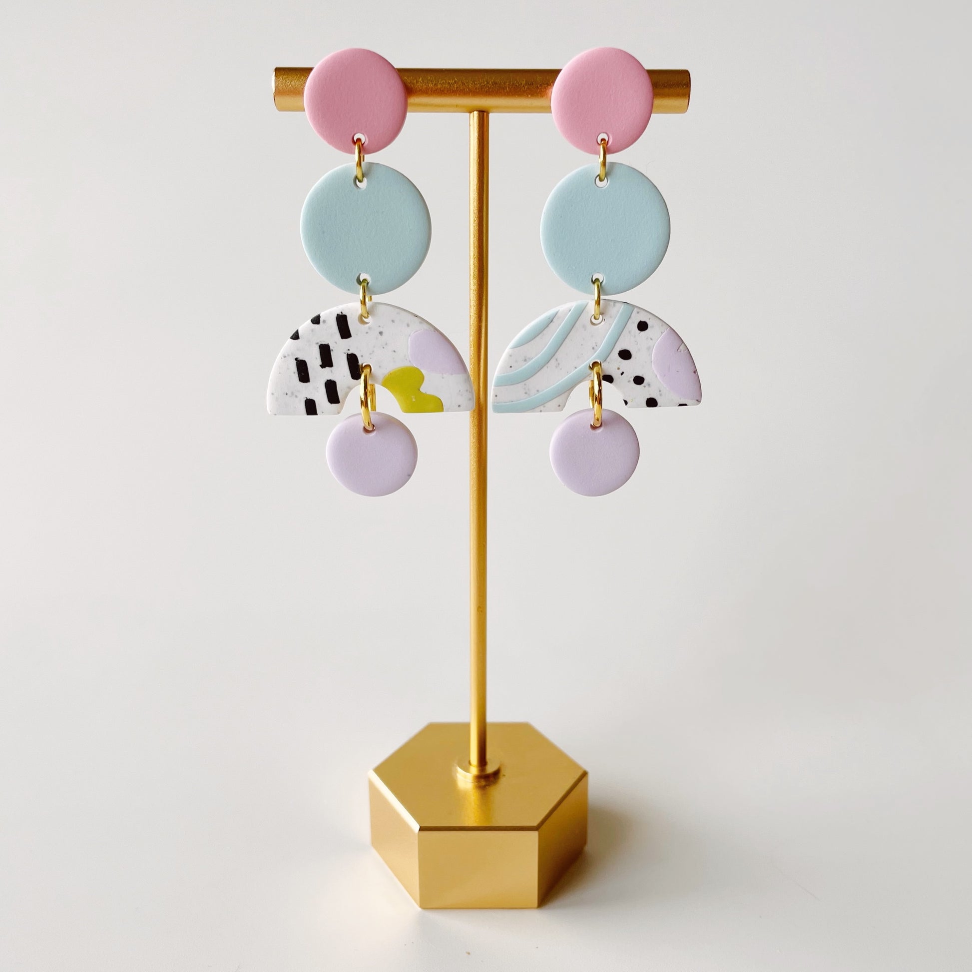 All Meadow & Mae earrings are made from hand-mixed polymer clay colors and utilize gold-plated and silver-plated posts and hooks. Additional hardware, such as jump rings, are brass.