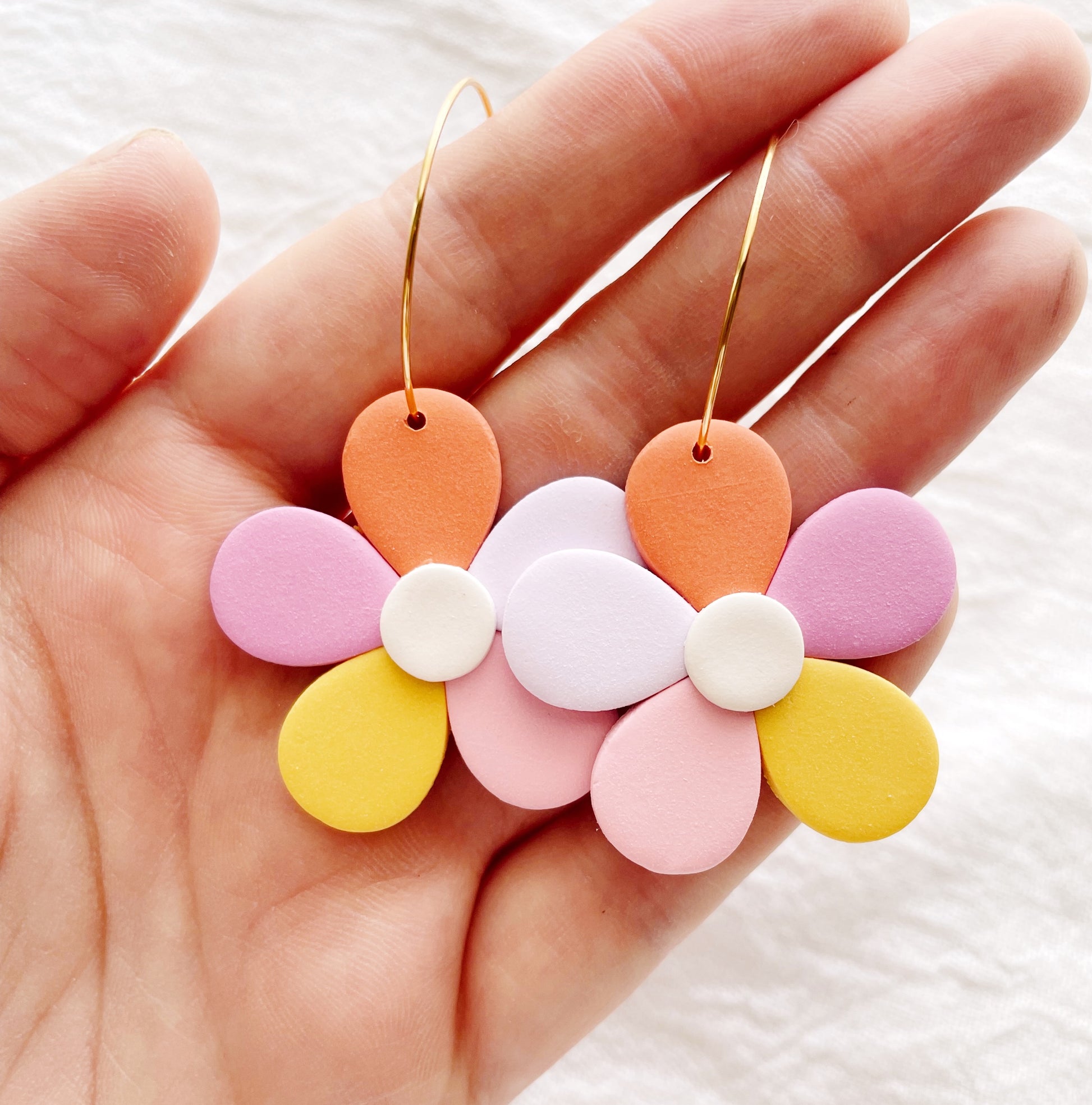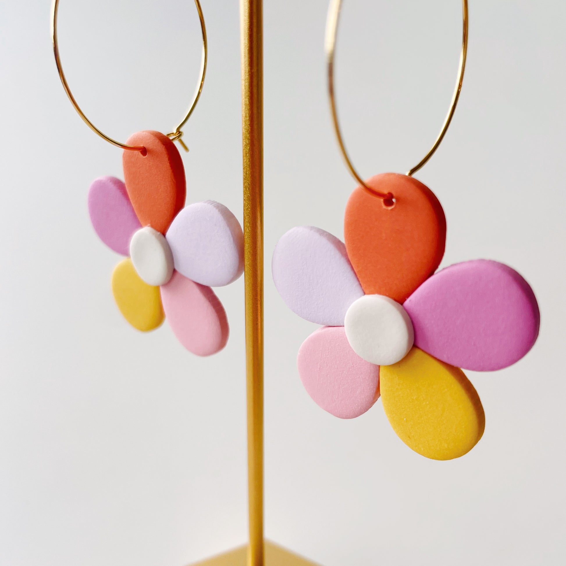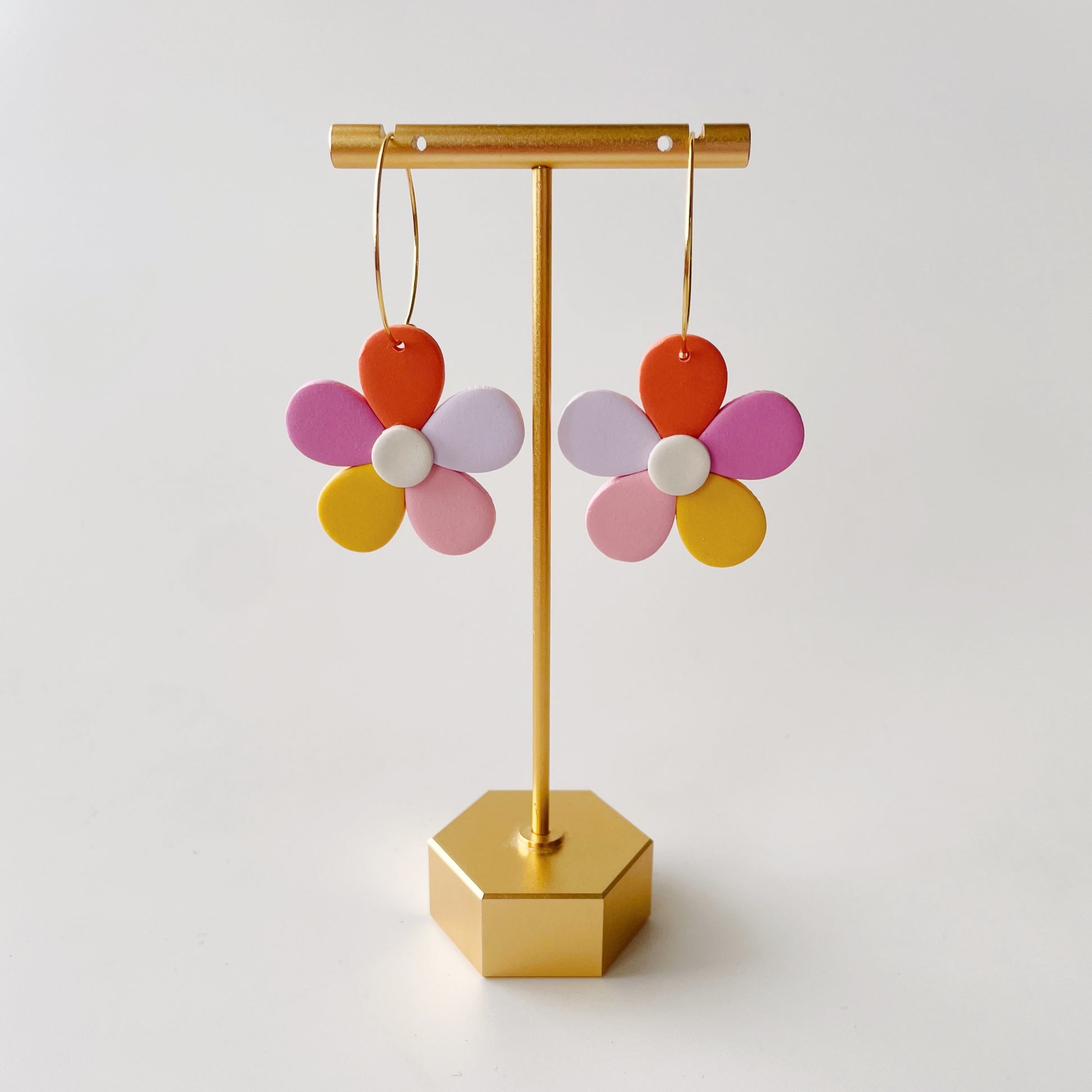 Our best-selling groovy flower hoops are back again! Grab em while you can!