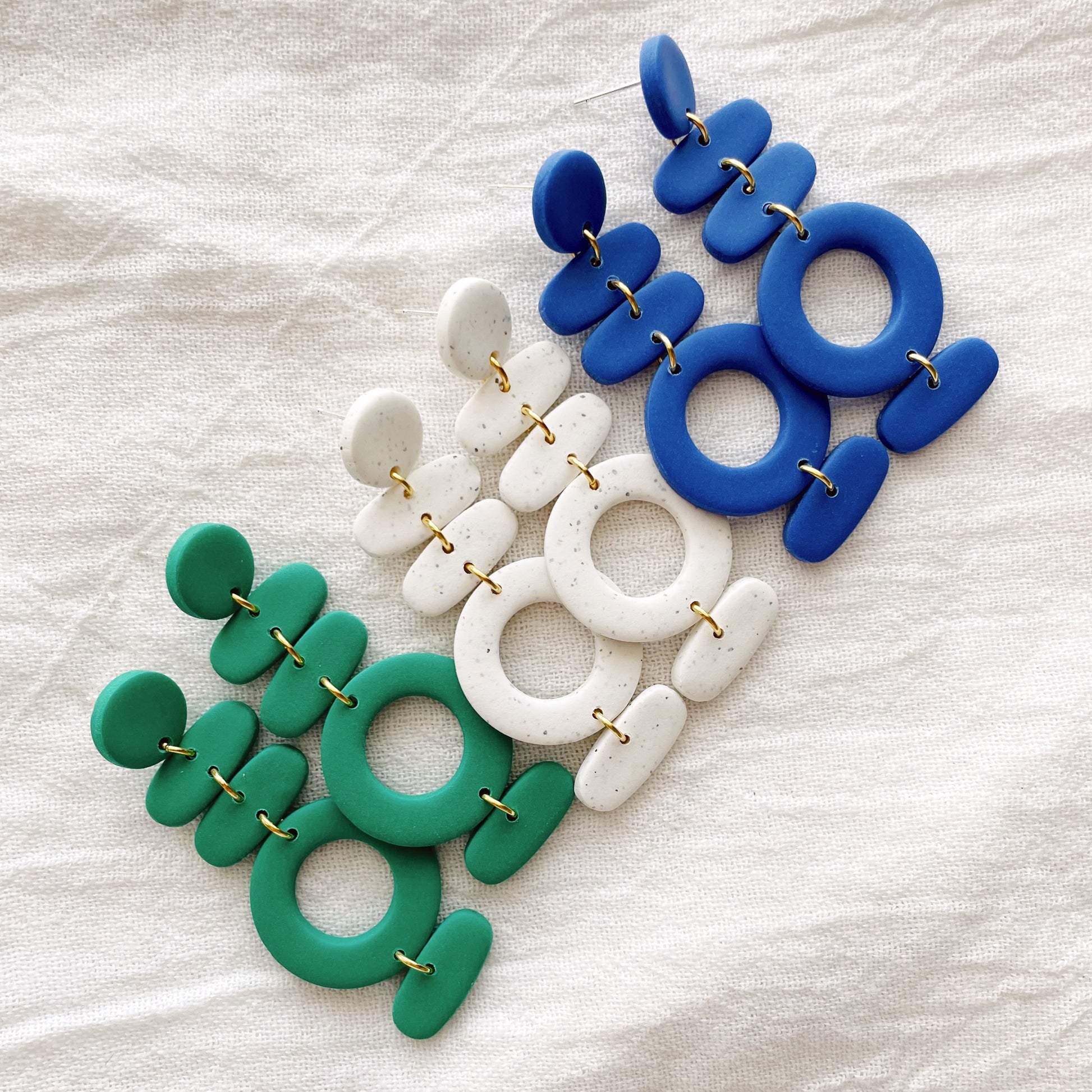 All Meadow & Mae earrings are made from hand-mixed polymer clay colors and utilize gold-plated and silver-plated posts and hooks. Additional hardware, such as jump rings, are brass.