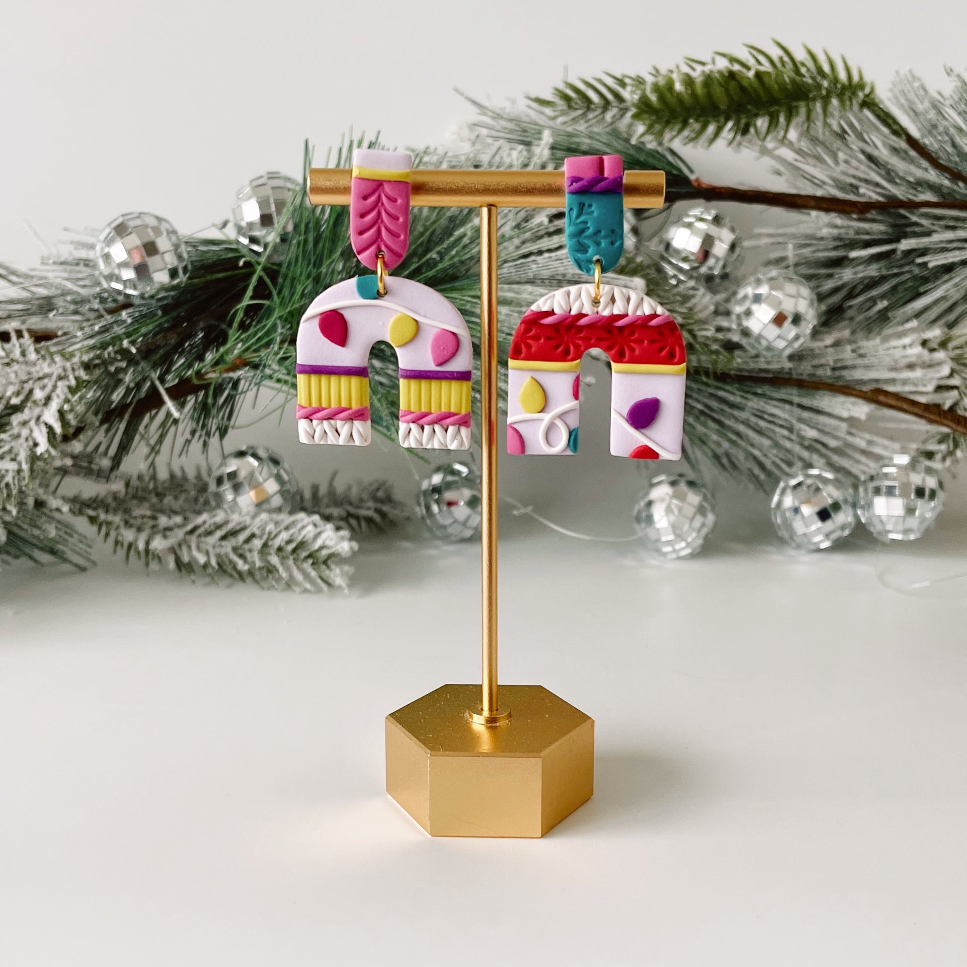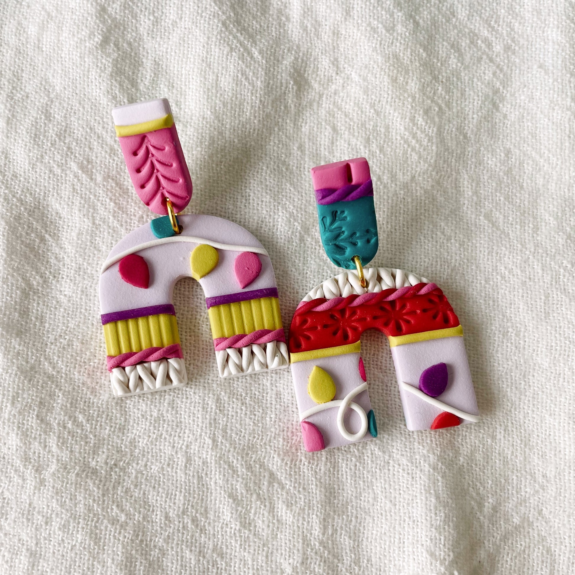 All Meadow & Mae earrings are made from hand-mixed polymer clay colors and utilize gold-plated and silver-plated posts and hooks. Additional hardware, such as jump rings, are brass.