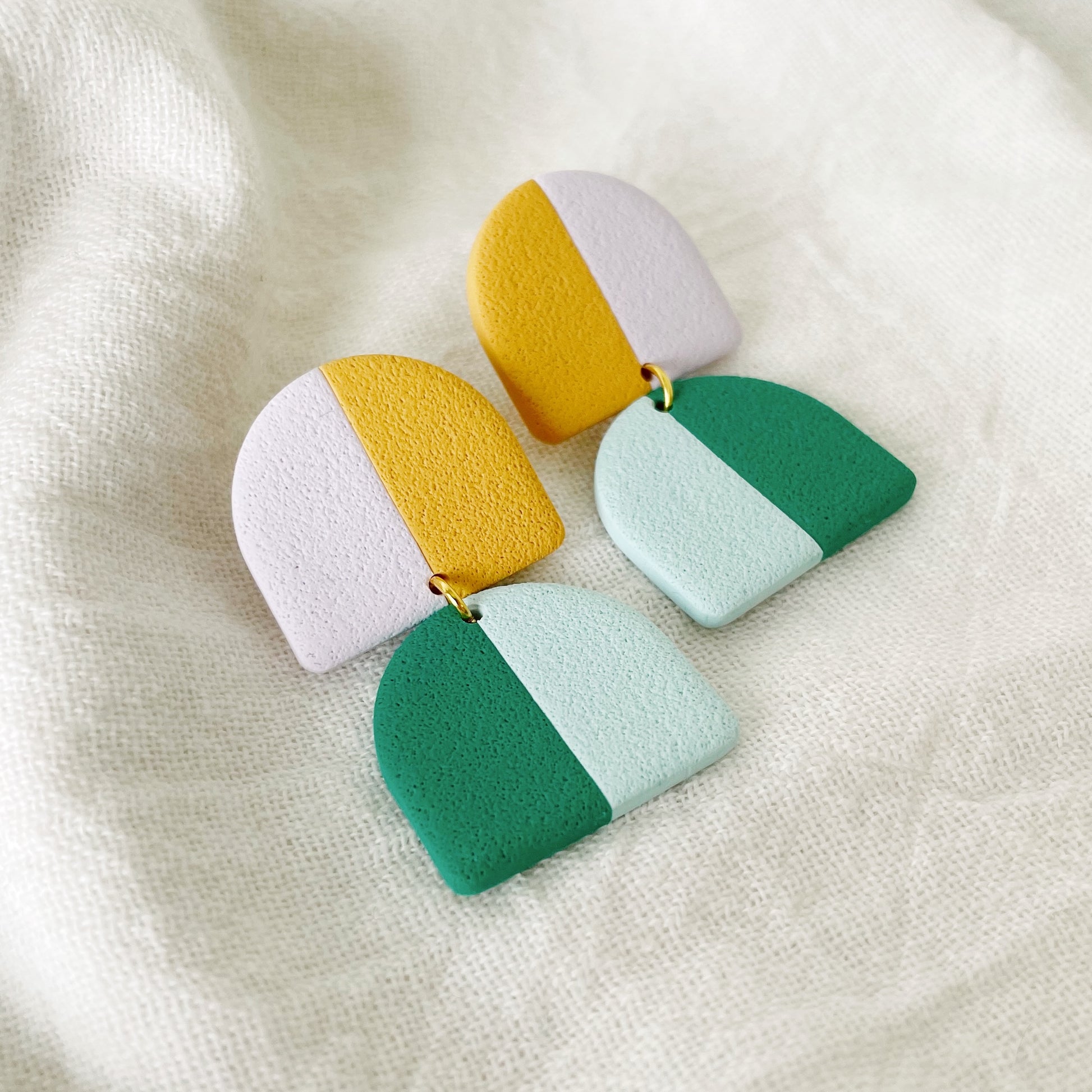 All Meadow & Mae earrings are made from hand-mixed polymer clay colors and utilize gold-plated and silver-plated posts and hooks. Additional hardware, such as jump rings, are brass.