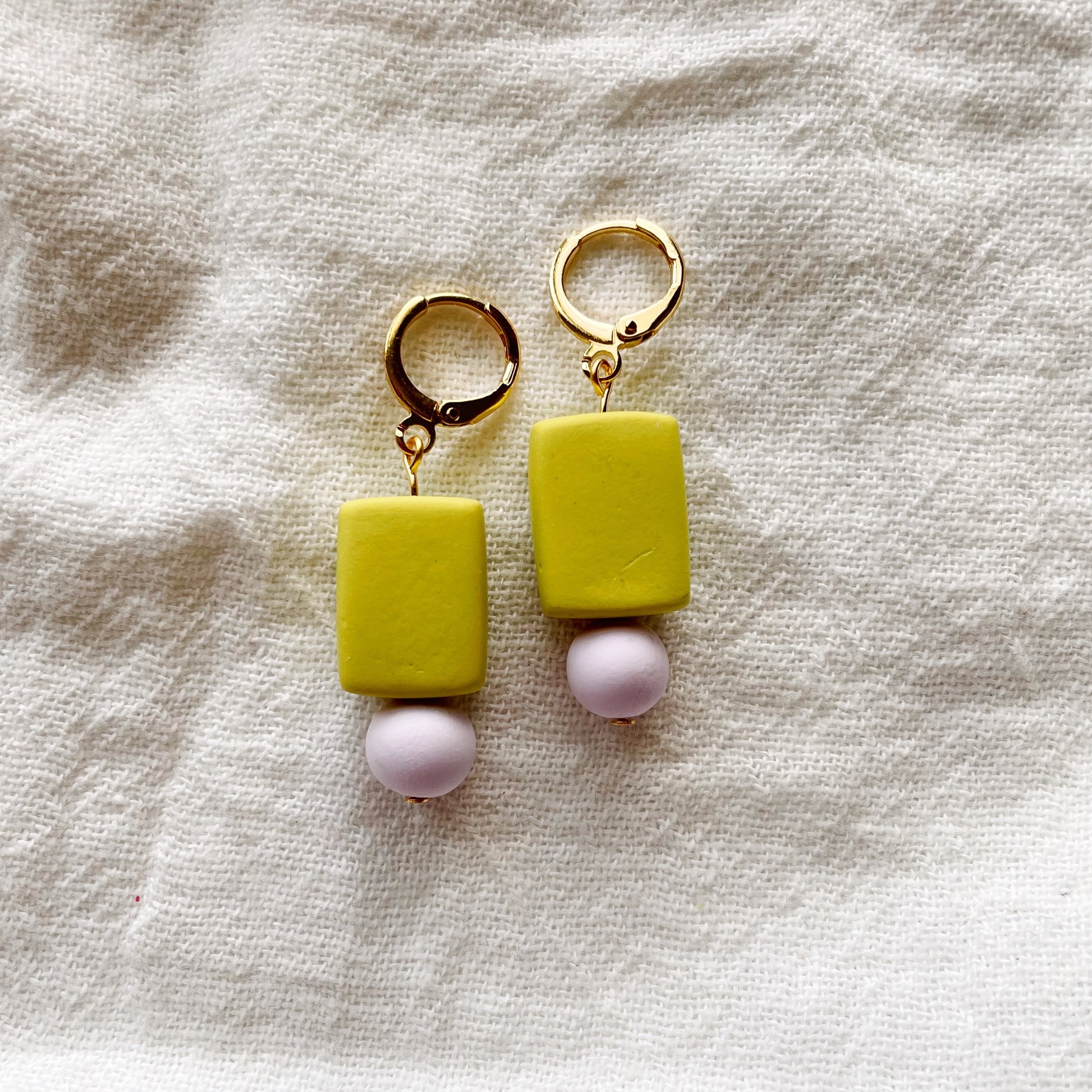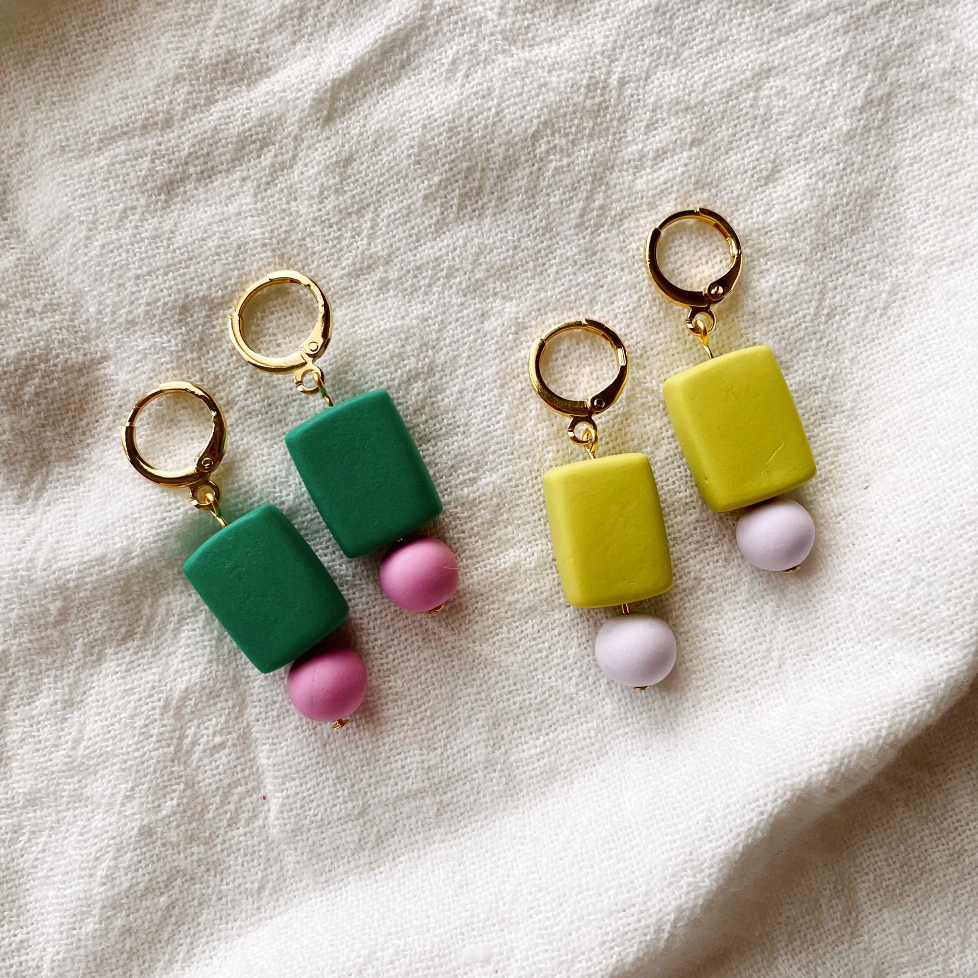 All Meadow & Mae earrings are made from hand-mixed polymer clay colors and utilize gold-plated and silver-plated posts and hooks. Additional hardware, such as jump rings, are brass.