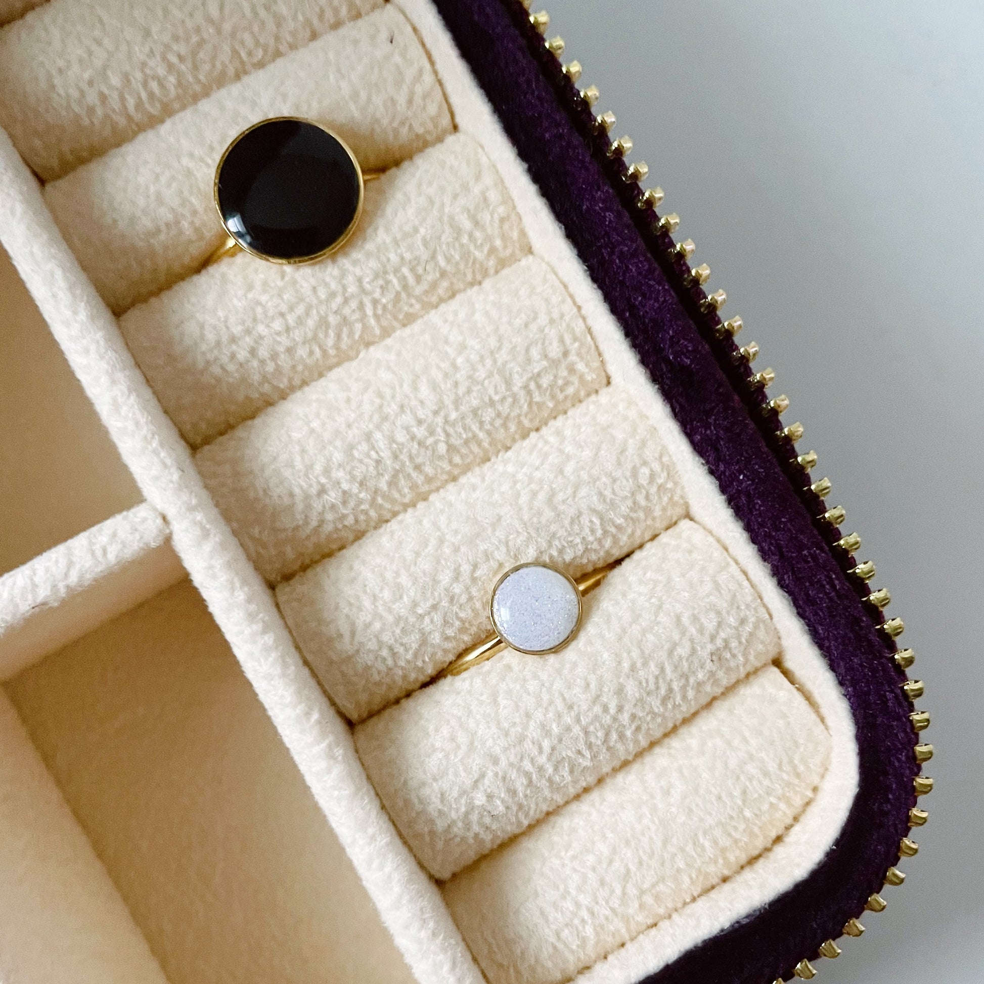 Keep your pretties safe and protected while you're traveling. With versatile compartments for all your favorite jewelry and a zippered closure, this sweet little case is perfect for bringing your Meadow & Mae bling on the go!