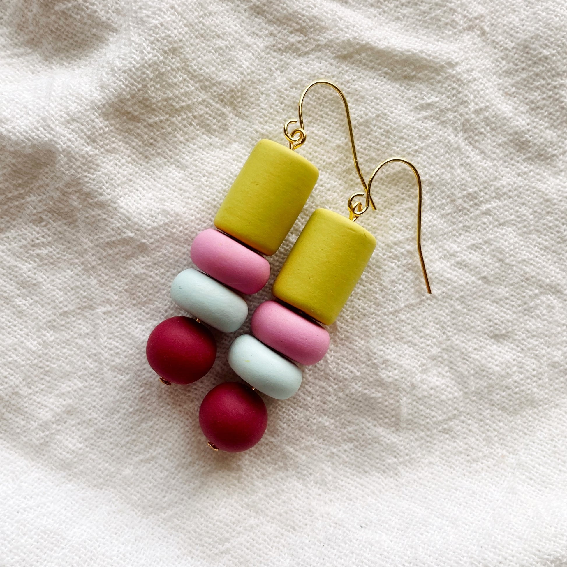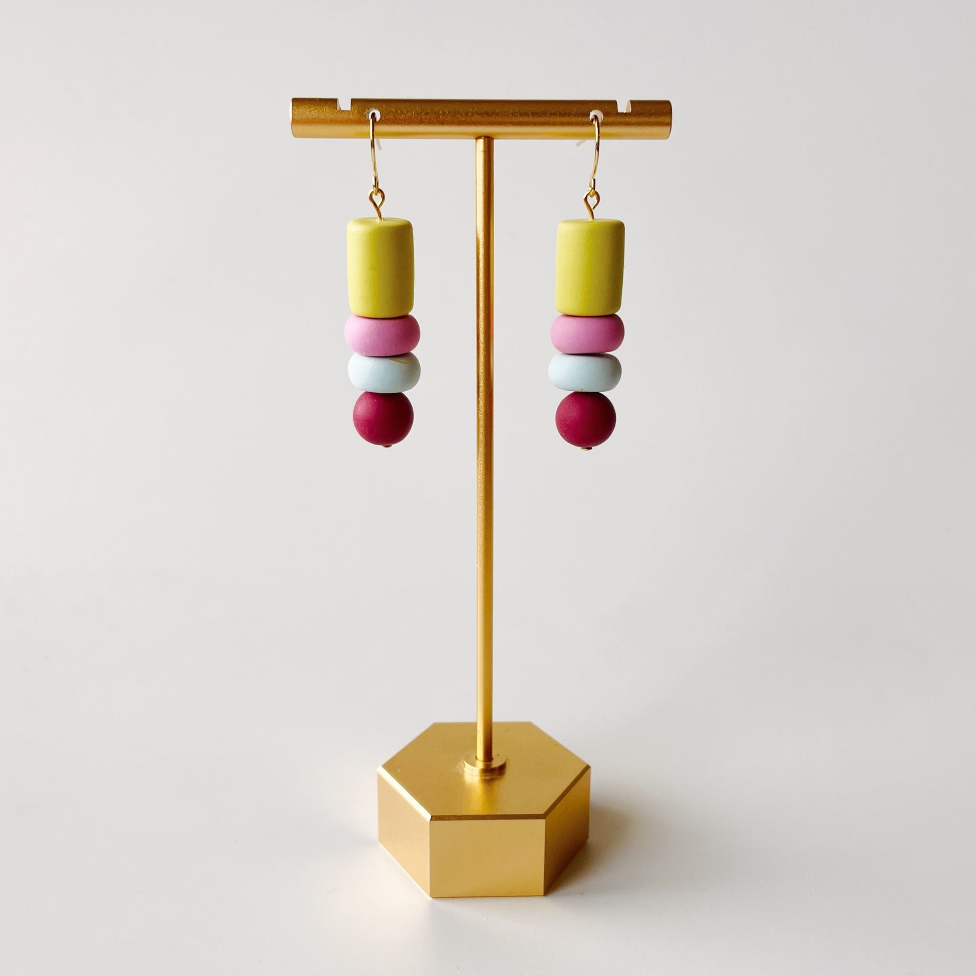 All Meadow & Mae earrings are made from hand-mixed polymer clay colors and utilize gold-plated and silver-plated posts and hooks. Additional hardware, such as jump rings, are brass.